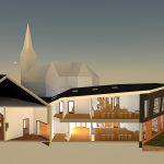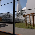 Door multifunctioneel gebruik en een efficiënte indeling hebben we op een relatief beperkt aantal vierkante meters een school kunnen ontwerpen die gebruik maakt van de mogelijkheden op de plek en voor de kinderen en leerkrachten een fijne sfeer creëert om in te werken en in te spelen. De afbeeldingen geven een impressie van buitenzijde en interieur met o.a. speelverdiepingen voor de kleuters, tussen kerk en school een binnentuin met vanuit de centrale gemeenschapsruimte zicht  op het monumentale kerkgebouw aan de andere zijde van de binnentuin.
