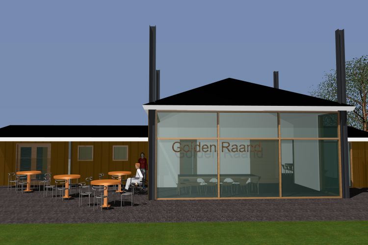 Ontwerp voor een dagverblijf en restaurant voor zorgboerderij De Golden Raand in Bedum. Het gebouw is ontworpen in de vorm van een hooiberg.