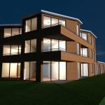 Voorlopig ontwerp gebaseerd op 15 appartementen met balkons die zijn ‘opgenomen’ in het gebouw, waardoor de bewoners beschut kunnen zitten. De appartementen zijn zo ontworpen dat ze allemaal veel gericht op zon en een groen uitzicht.