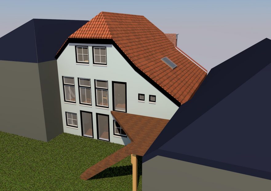 In het centrum van Winsum is een voorontwerp gemaakt voor het herbouwen van een vervallen pand met historische waarde. Gelegen op een unieke locatie aan het water biedt dit pand ruimte aan een of meerdere woningen. Met respect voor de historische waarde van deze plek en van dit pand is een nieuw ontwerp gemaakt dat aan de waterzijde heel open en licht is en via het dakterras uitzicht biedt over het water.